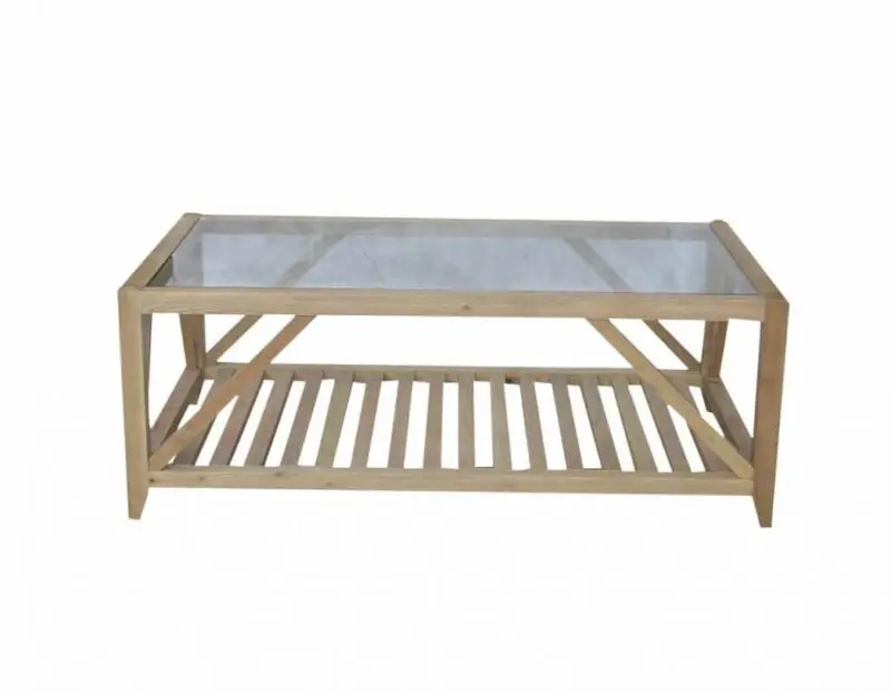 Solid oak timber with tempered glass top