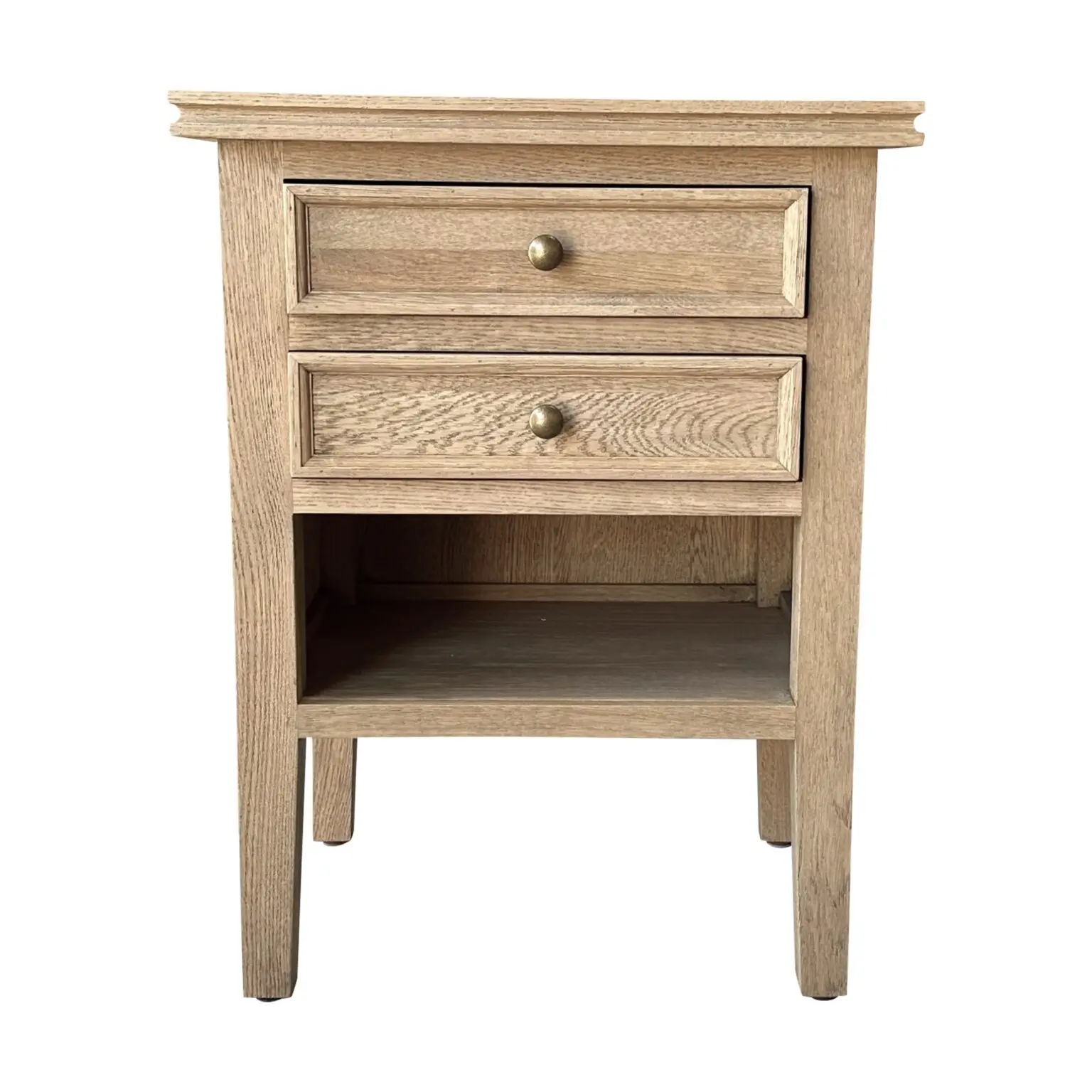 Handcrafted of solid oak and oak veneerWeathered oak finishDovetailed drawers with brass knobsSize: 50 cm W × 40 cm D × 65 cm HSKU: LH3045